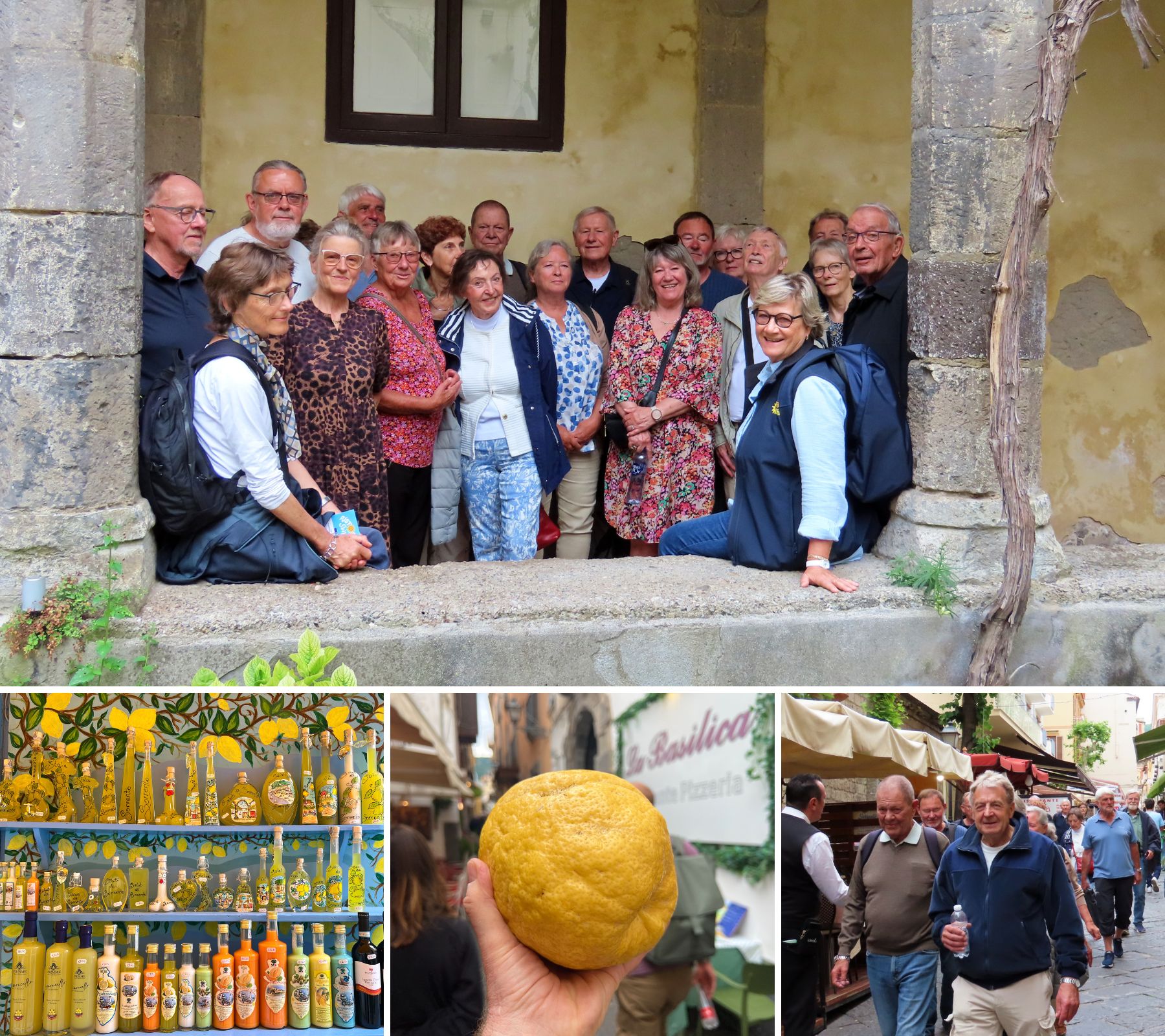 Idag ska vi på utflykt till Sorrento stad. Bussen avgår klockan 10 och alla sitter på plats i god tid. Himlen är grå och ett lätt dis ligger över Neapelbukten, men temperaturen är behaglig.